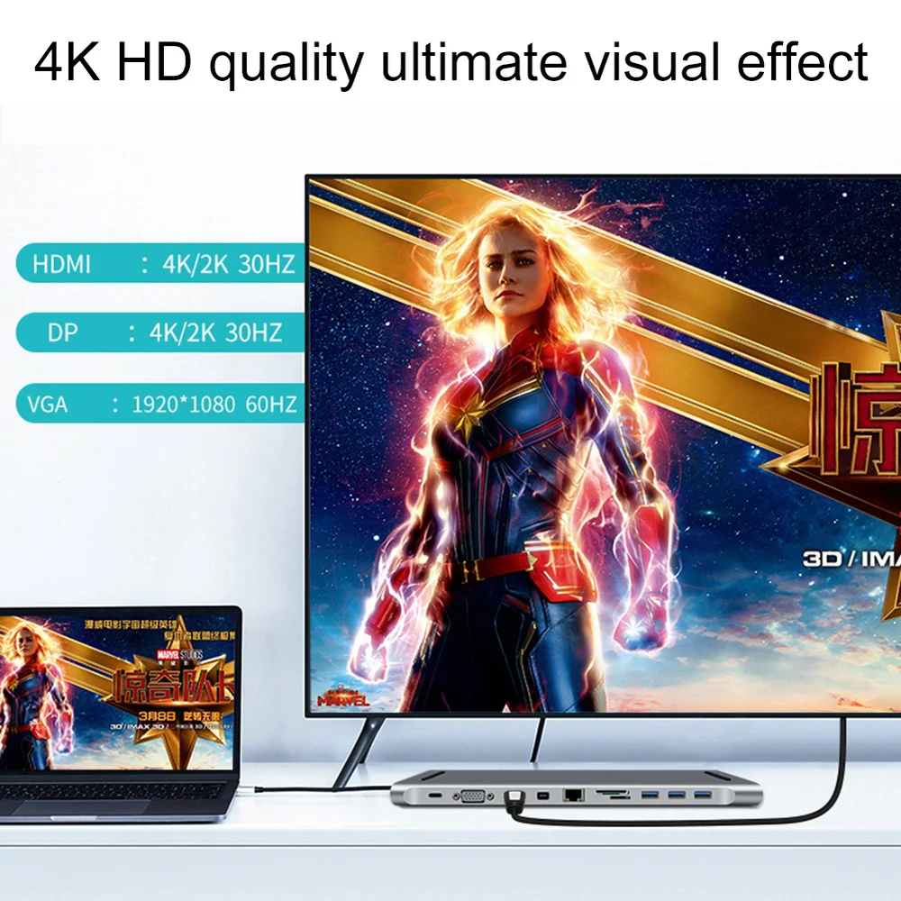 NEW 12 in 1 Type c docking station Aluminum to HDMI Card Reader RJ45 PD for Charger Audio MacBook Samsung Galaxy usb c Hub